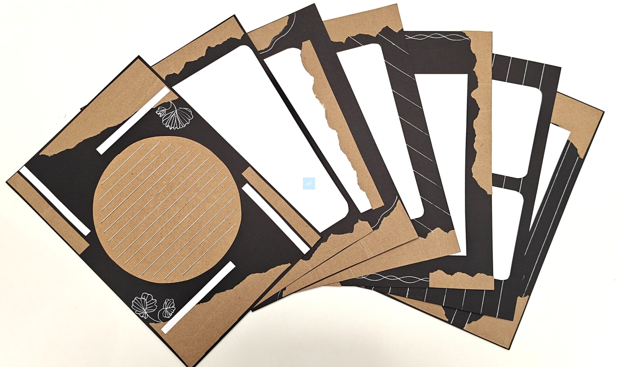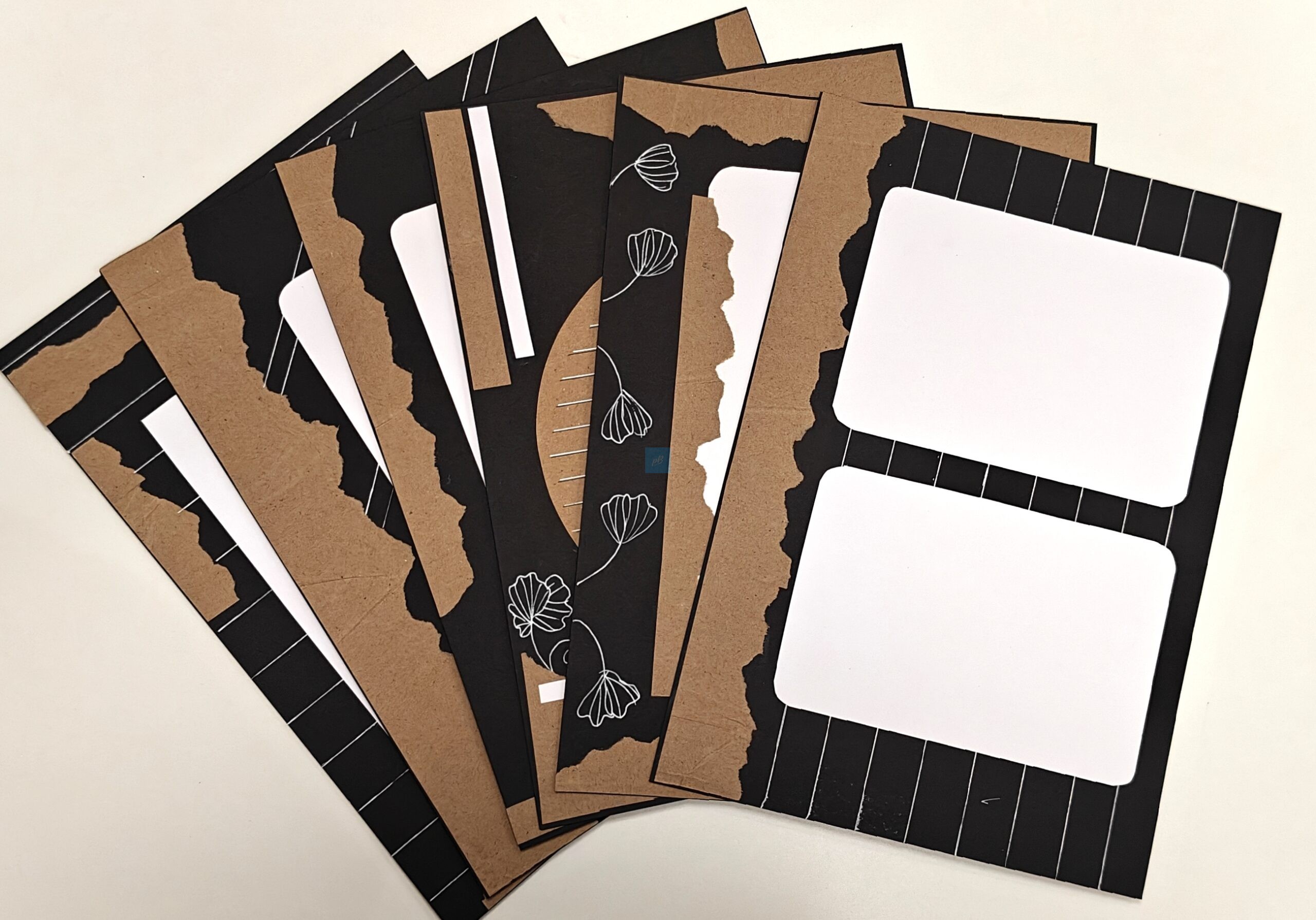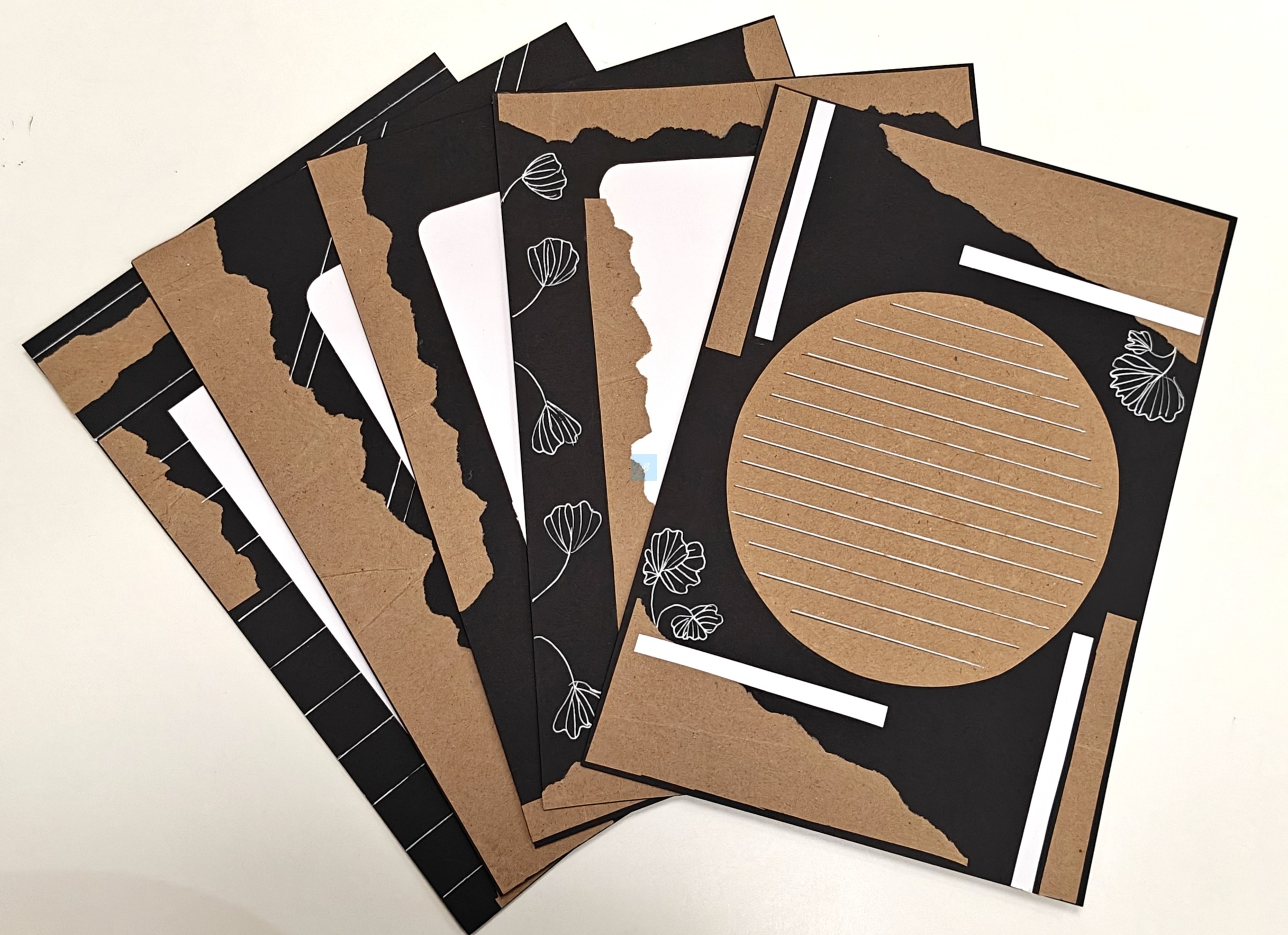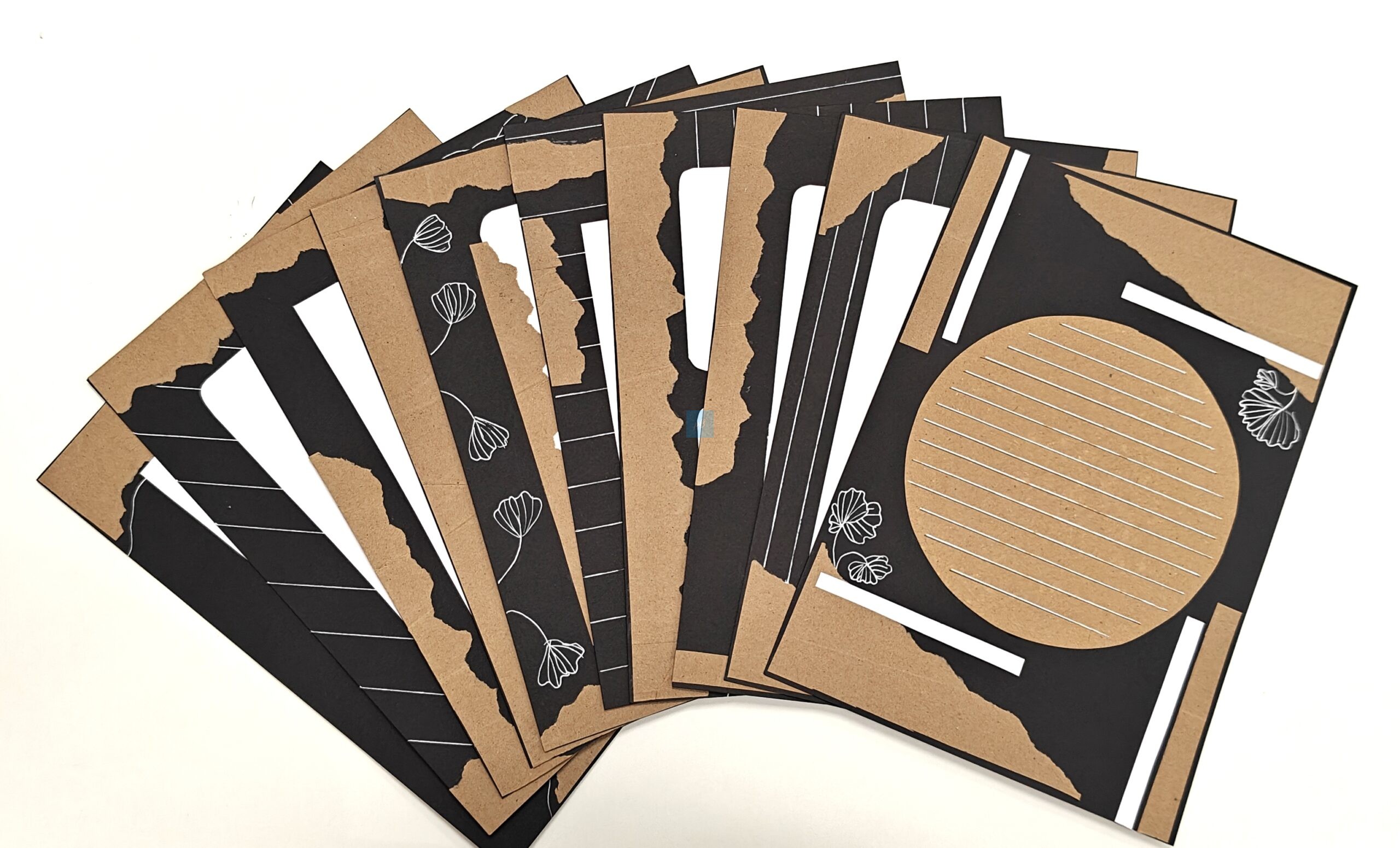 Handmade Kraft & Black (Vintage) Designer Sheet Set (Pack of 10). Each A4 sheet features a unique combination of textured kraft brown and matte black handmade paper, beautifully layered with minimal white line detailing. Perfect for journaling, scrapbooking, DIY crafts, and creative presentations, these sheets add a rustic yet modern touch to your art projects. Designed for artists, students, and crafters who love aesthetic stationery and premium quality handmade materials.