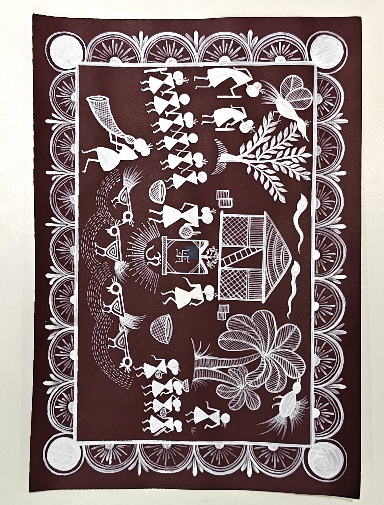 Each artwork is hand-painted, making every piece unique. Whether used for educational purposes or as a decorative ethnic wall art, this Warli painting adds cultural depth, tradition, and artistic value to any space.
