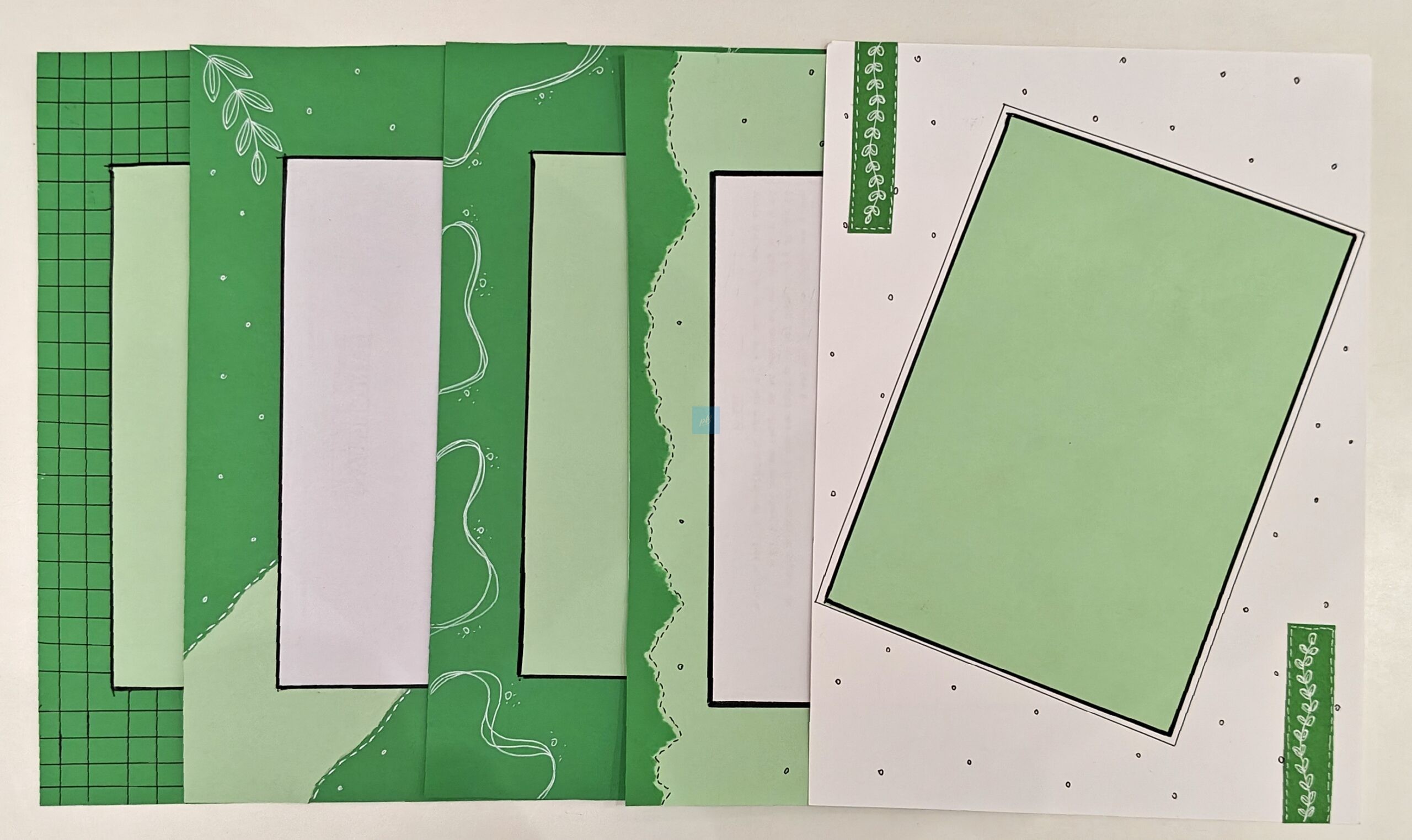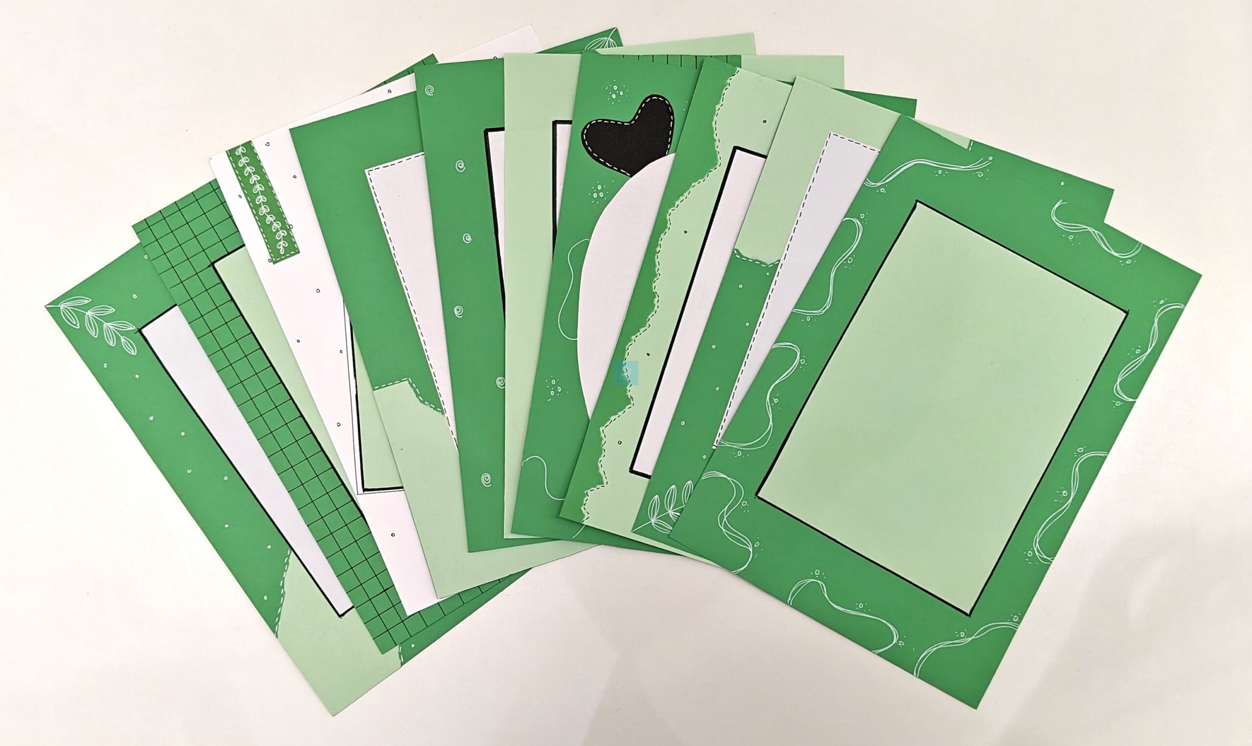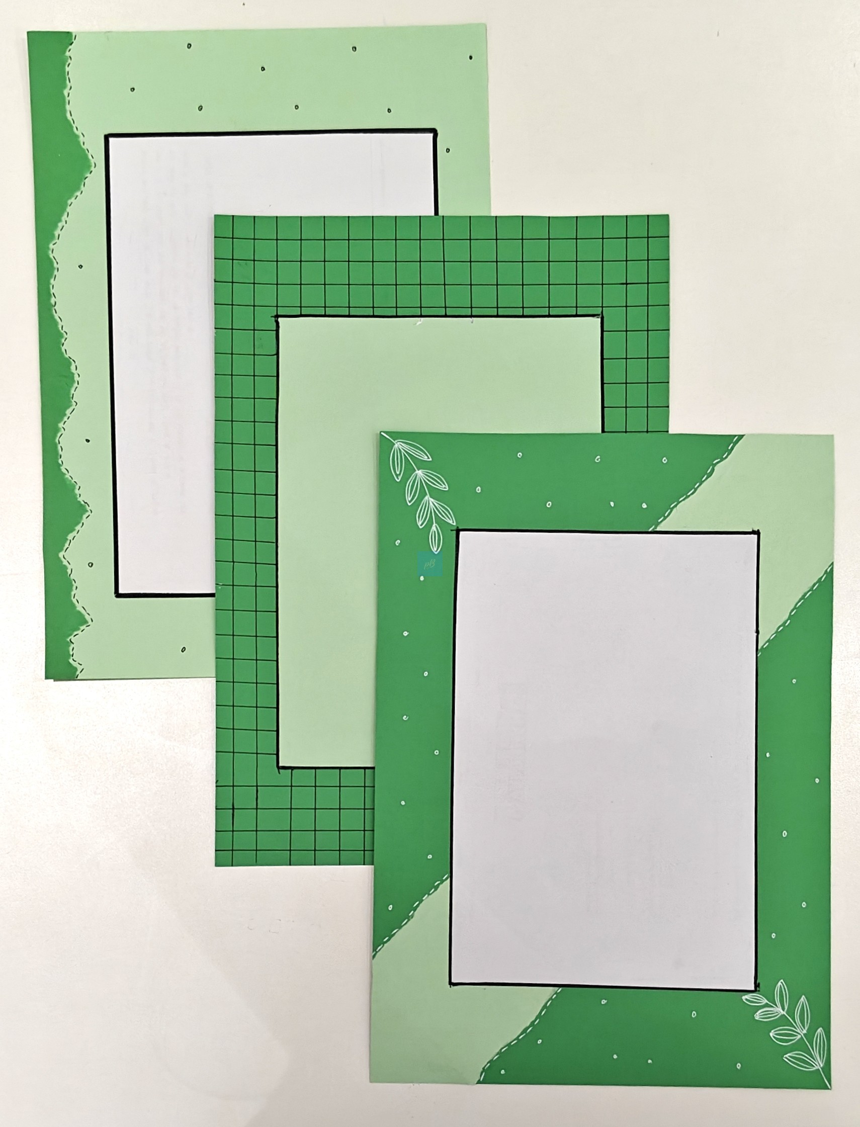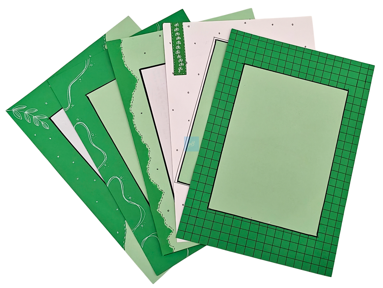 Printed on premium-quality A4 paper, these sheets offer smooth writing, easy sticking, and neat presentation. Ideal for project work, title pages, charts, craft assignments, and DIY art journaling, these green-themed pages add creativity and charm to any submission.
