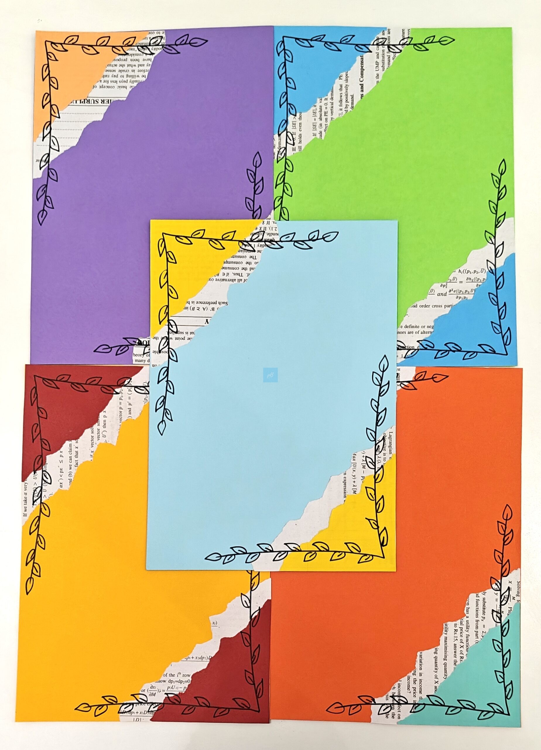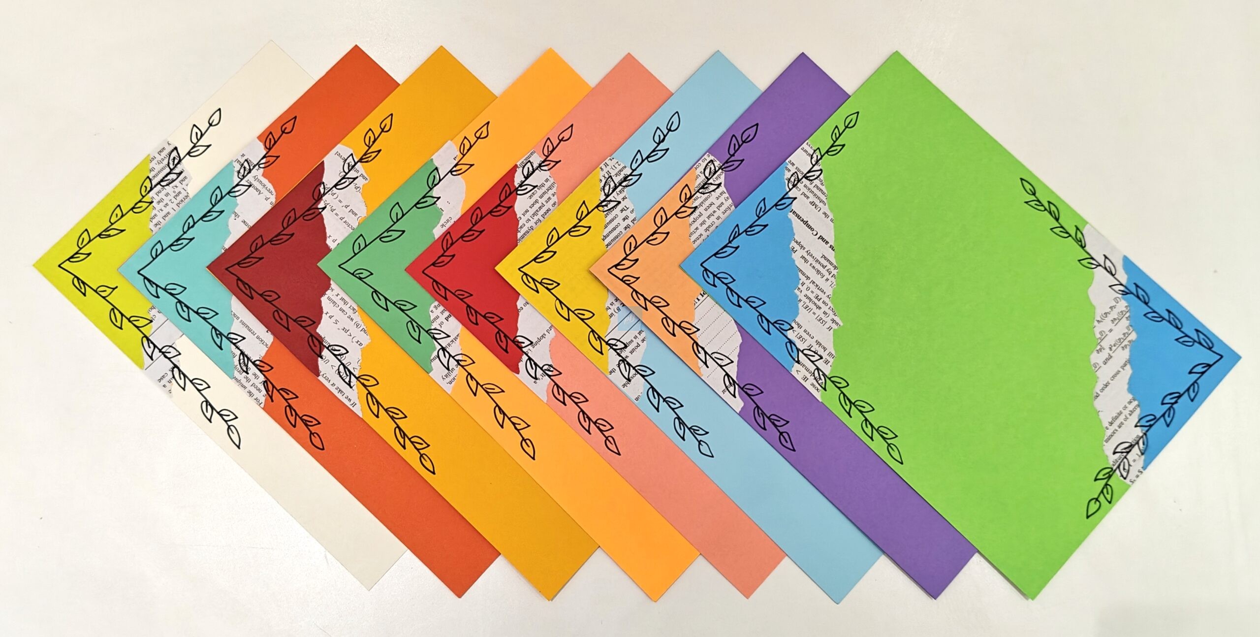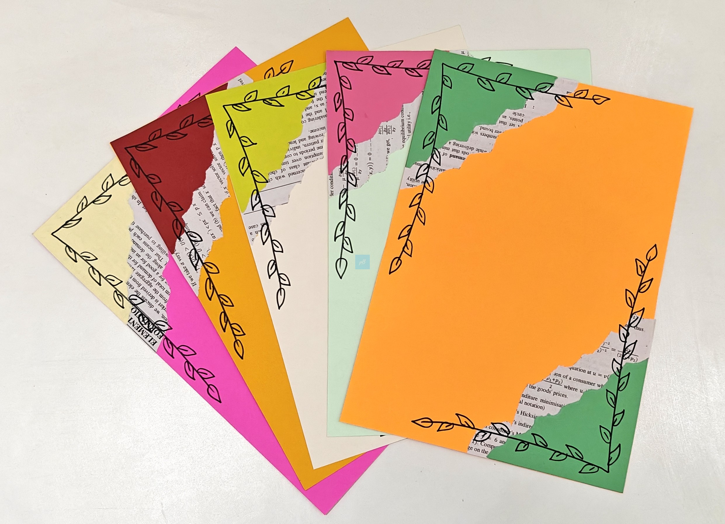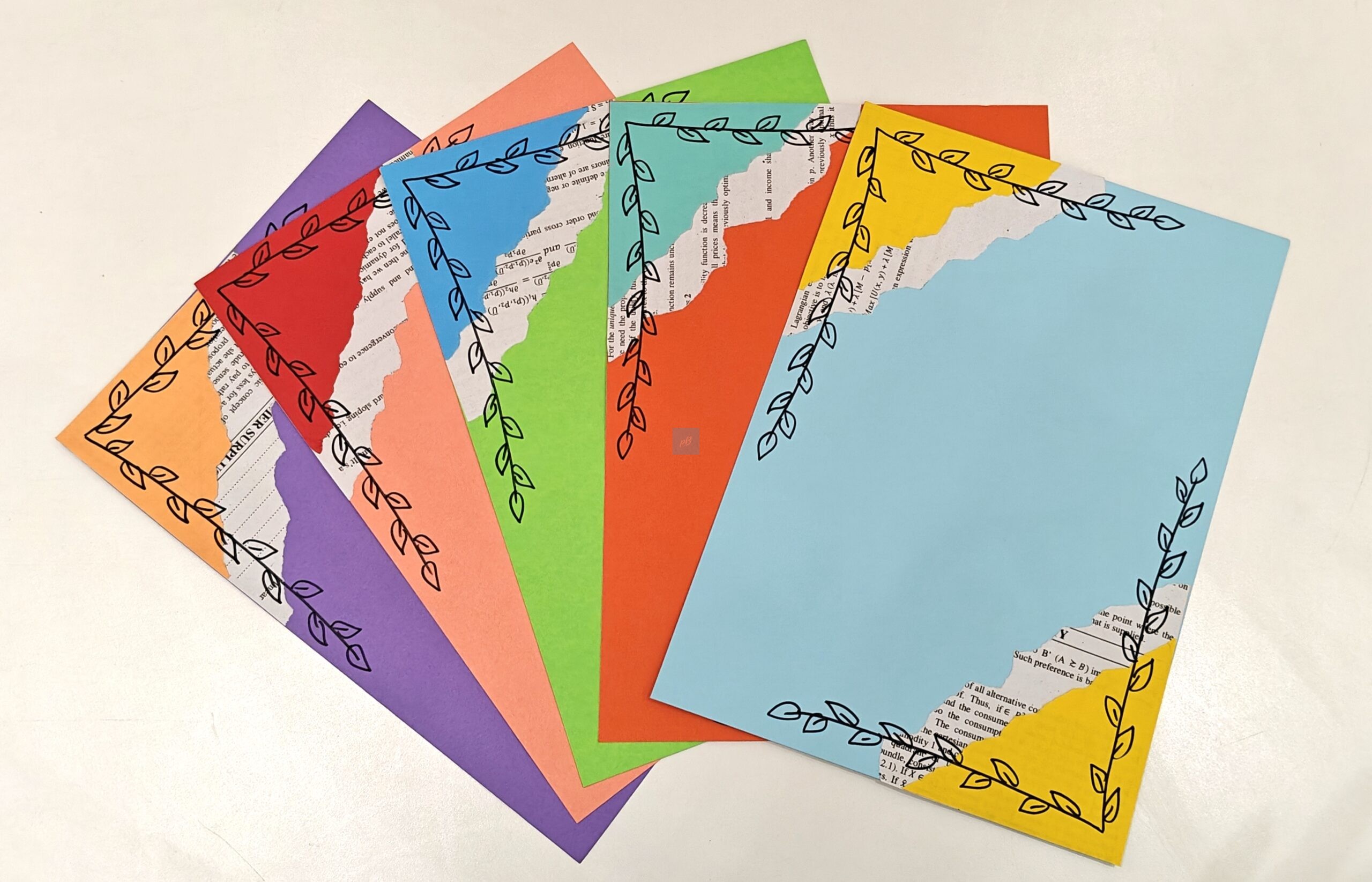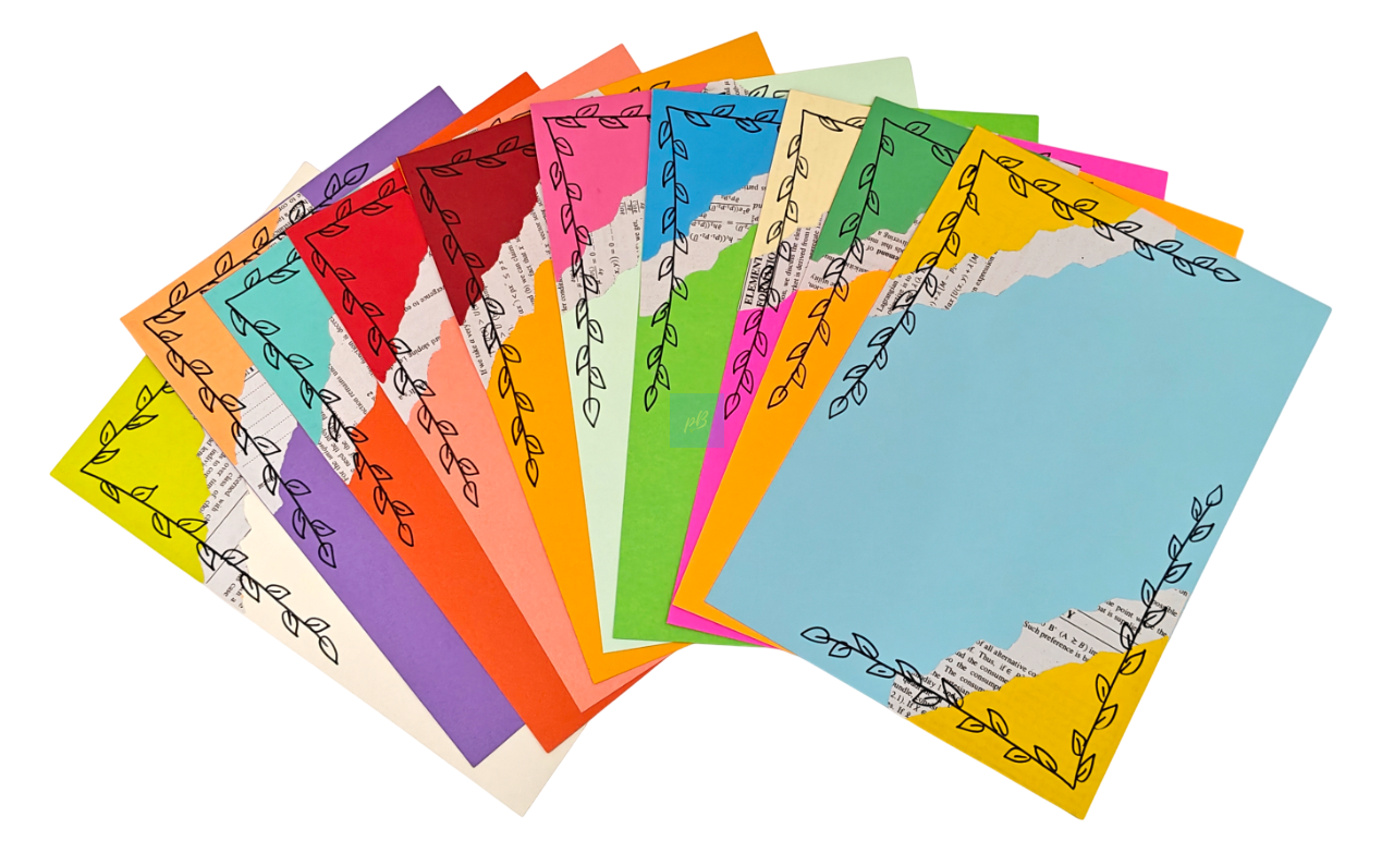 Add colour and creativity to your writing with these Handmade Multicolor Designer Writing Sheets featuring an elegant leaf border and artistic torn-paper collage pattern. Designed in vibrant shades, these A4 sheets are perfect for journaling, letter writing, scrapbooking, school projects, art work, and DIY crafts.