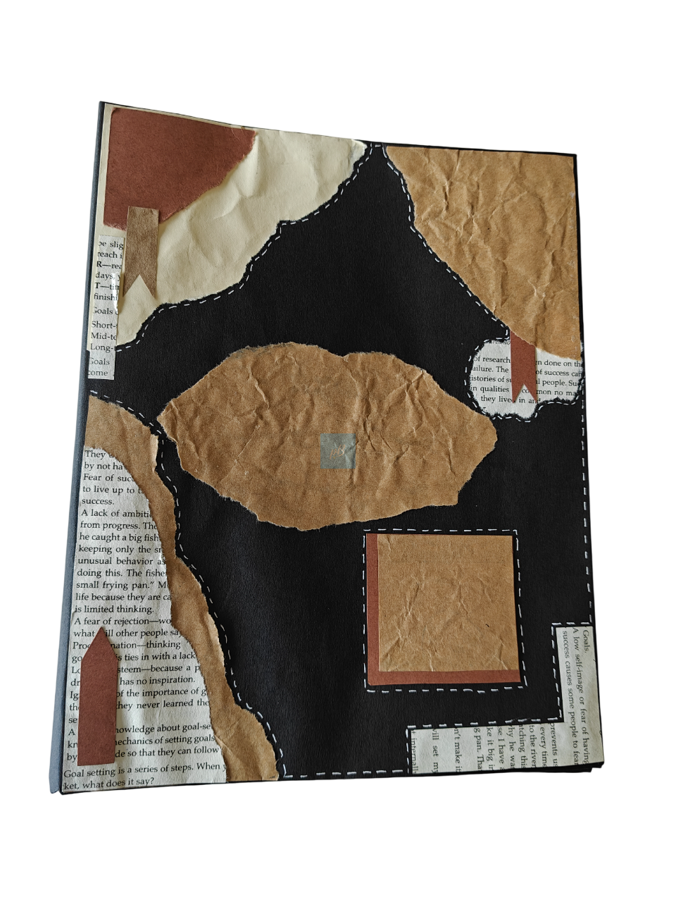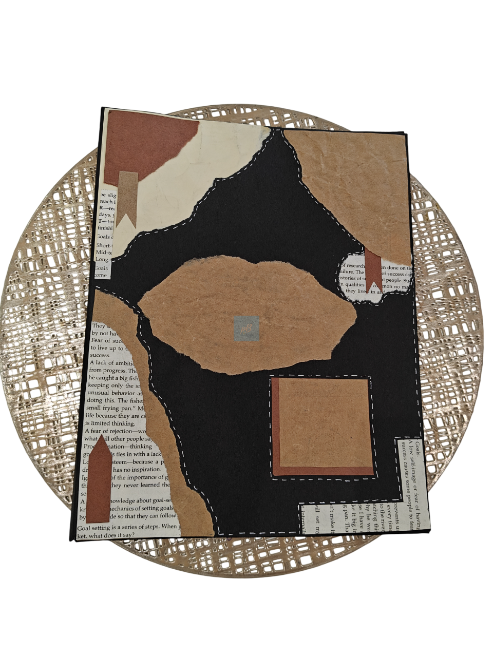 Project Banao Handmade Vintage Collage Folder – Thoughtfully crafted with layers of kraft paper, newspaper prints, and textured handmade sheets, this folder combines artistic aesthetics with practical functionality. Designed to accommodate A4-size sheets, it’s perfect for school projects, art submissions, journals, or creative documentation.